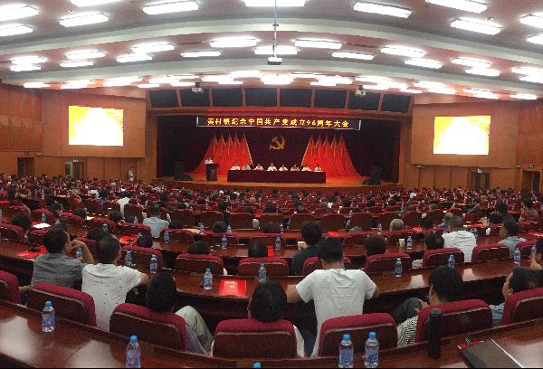 | 2017年6月30日上午9:00,黄村镇纪念中国共产党成立96周年大会在校长大厦逸夫报告厅召开。镇领导班子成员,村、社区两委班子成员,企业、双管单位负责人,包村干部及科室负责人,镇级优秀党员等500余人到场参加。 黄村镇党委书记白立成在会上做了重要讲话。