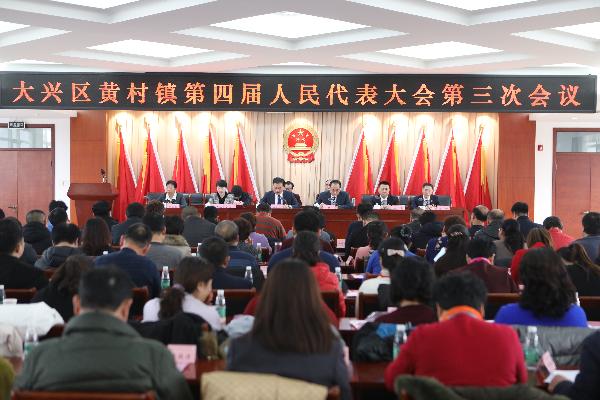 | 2018年1月27日,黄村镇第四届人民代表大会第三次会议在镇政府六楼第一会议室隆重召开。大会应出席代表81名,实到代表77名,听取和审议政府工作报告,书面审议财政工作报告、副镇长工作述职报告。镇副职以上领导列席会议。