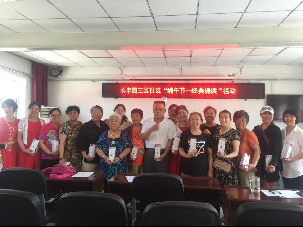 6月14日,长丰园三区社区党支部、居委会开展了“我们的节日·端午”经典诵读活动。在诵读中亲近经典,感受传统文化的魅力,增强爱国主义情感。